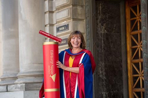 Today the TV presenter joined hundreds of Edinburgh Napier students at a ceremony in the Usher Hall to receive an Honorary Doctorate of Arts.