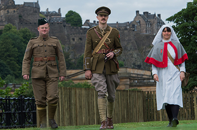 Organised by Wilfred Owen’s Edinburgh 1917-2017 – a committee consisting of representatives from Edinburgh Napier University, Scottish Poetry Library, Wilfred Owen Association, military charity Glen Art, Poppyscotland, and others - a unique re-enactment event took place at Waverley Station and along Princes Street this morning (26 June) as a programme of events to commemorate the centenary continued.