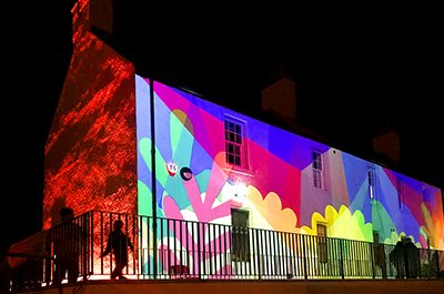 “Being at the launch and seeing our work projected on the wonderful canvas of the renovated farmhouse was an amazing experience,” said Chloe Salvi, one of the students involved. “Bridgend is such a great platform for engaging the community and the work the volunteers have been doing to bring it all to life is incredible. There was a wonderful atmosphere on the night – people really enjoyed the evening, music and projections and we felt grateful that we were able to contribute to the celebrations with our designs.”
