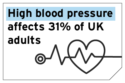 High blood pressure is a major cause of cardiovascular disease and stroke. In the UK, 31% of the adult population has high blood pressure, and it’s estimated that poor control of the condition contributes to 62,000 avoidable deaths each year.