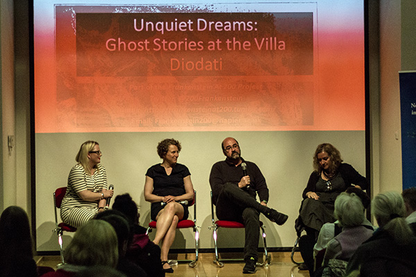 This public event was organized for the anniversary of the ‘birth’ of Frankenstein in summer 1816. In June 1816, the ‘year without a summer’, Lord Byron rented the Villa Diodati on Lake Geneva, where a remarkable gathering and a ghost story challenge stimulated two of the most famous literary works in nineteenth-century Gothic: John Polidori’s The Vampyre and Mary Shelley’s Frankenstein. This public event revisited that meeting, in an evening of performance, talks and discussion that explored this significant moment in Gothic fiction’s history and the cultural legacy of these writers for literature, science, and film. Professor Dale Townshend, University of Stirling/Manchester Metropolitan University, and Dr Linnie Blake, Manchester Metropolitan University, joined Dr Emily Alder and Dr Sarah Artt from Edinburgh Napier University for a lively conversation about the Gothic then and now.