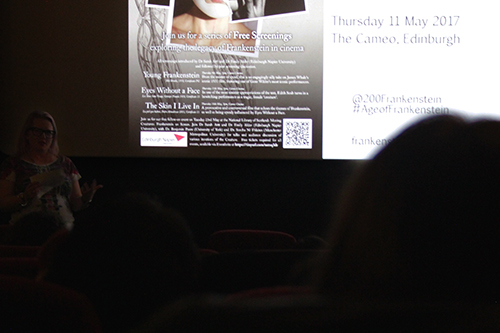 Throughout May 2017, we ran a series of events devoted to more unusual interpretations of Frankenstein. We held three screenings at the Cameo Cinema on 4, 11 and 18 May. These were followed by audience discussion, where we debated the merits of Young Frankenstein (Mel Brooks, 1974), Eyes Without A Face/les yeux sans visage (Georges Franju, 1959) and The Skin I Live In/La piel que habito (Pedro Almodovar, 2011). This was followed by a panel discussion event at National Library of Scotland on 23 May where we examined the legacy of Frankenstein on stage and screen. We welcomed a range of exciting guests to our events. At our Young Frankenstein screening , Rachael Durkin (Edinburgh Napier) discussed the use of music in the film and Shelley’s novel, and Terence Sayers (Queen Margaret University) discussed the film’s cinematic influences. At Eyes Without A Face, Tara Thomson (Edinburgh Napier University) commented on the role of the flaneuse as victim and Charlotte Bosseaux (University of Edinburgh) discussed issues of translation and subtitling. At our final screening of The Skin I Live In, Ann Davies (University of Stirling) introduced the film, and afterwards Véronique Desnain (University of Edinburgh) discussed the film’s adaptation from the novel Mygale and its relationship to Frankenstein. At our NLS event, Sorcha Ní Fhlainn (Manchester Metropolitan University) offered an overview of key moments of Frankenstein on film from the silent era to the present; Benjamin Poore (University of York) commented on recent stage adaptations, and Sarah Artt (Edinburgh Napier) gave a more detailed reading of Young Frankenstein, Eyes Without a Face, and The Skin I Live In.
